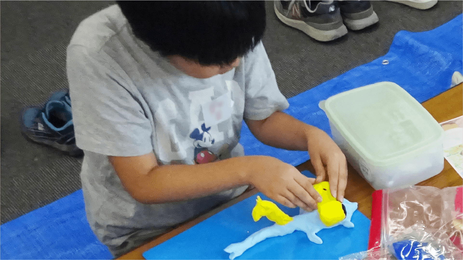 目の前のねんど、目の前の人、テーマの生き物に集中すること。今に意識を向けることで、本来持っている創造力が最大限に引き出されます。