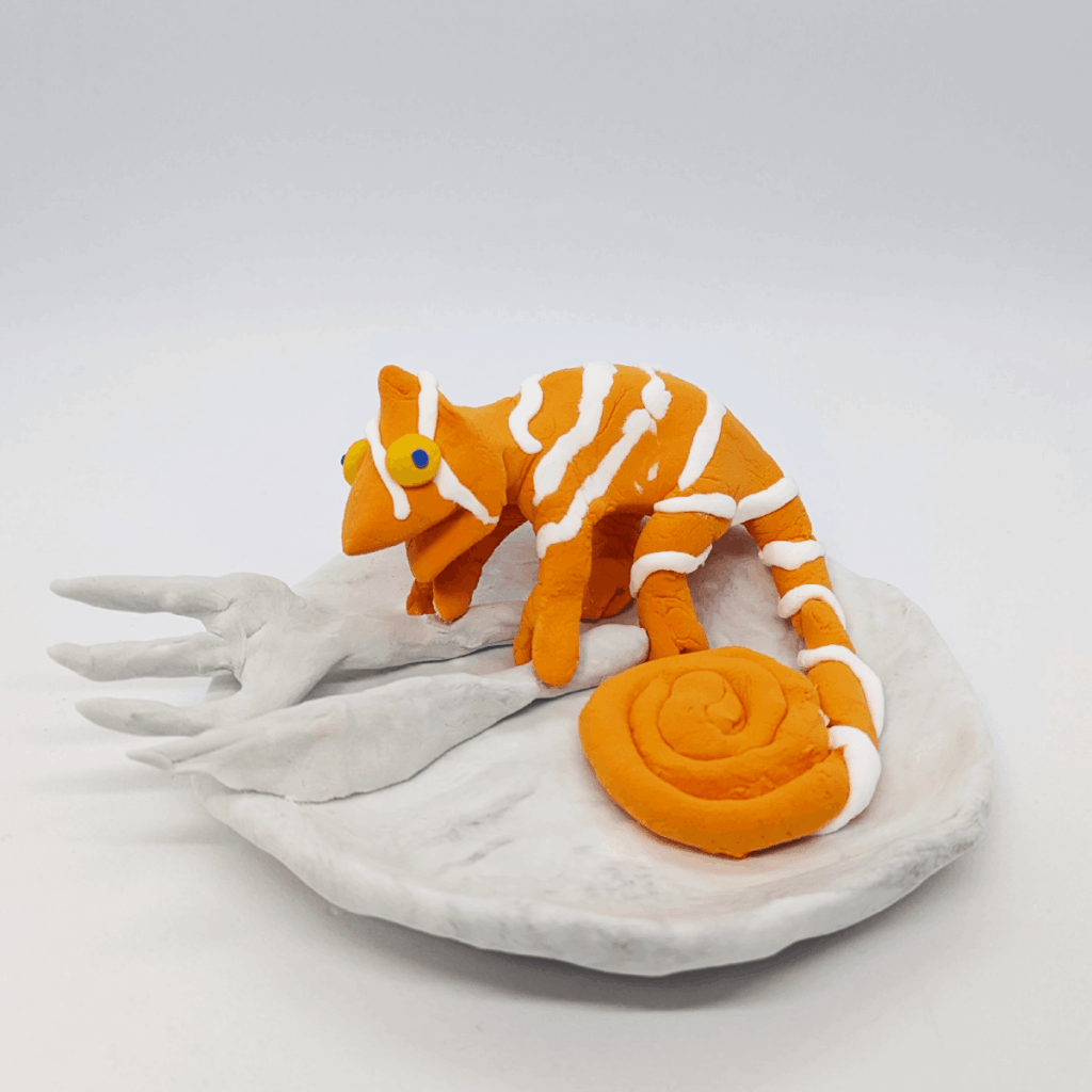 カメレオンの手は枝をはさみやすいようにミトンみたいになっているので、ナイフとフォークが挟みやすい。